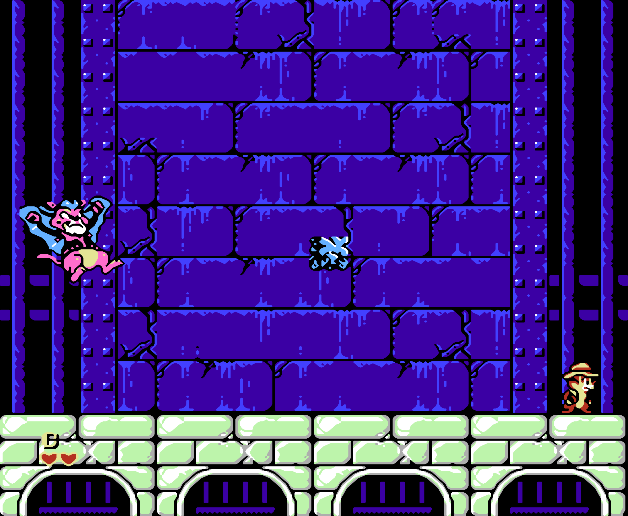 二代只在邻居家卡带里面见过(因为二代是 1993 年出的)。但当时(看别人)玩到了第五关。因此我对二代的印象比一代要深。二代是卡普空公司的最后一个 FC 游戏。下文主要描述二代。