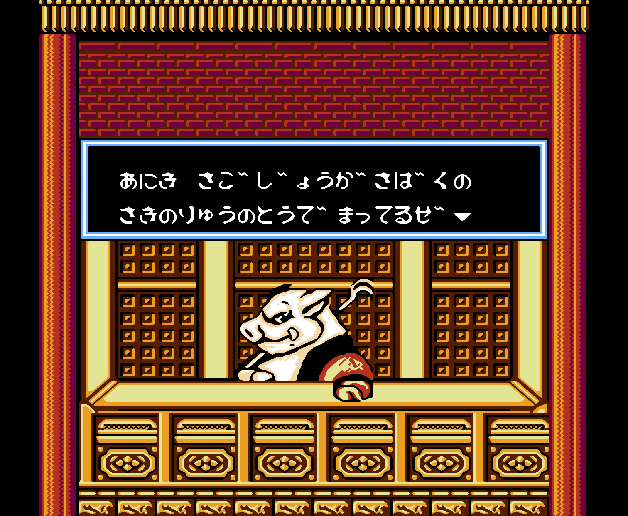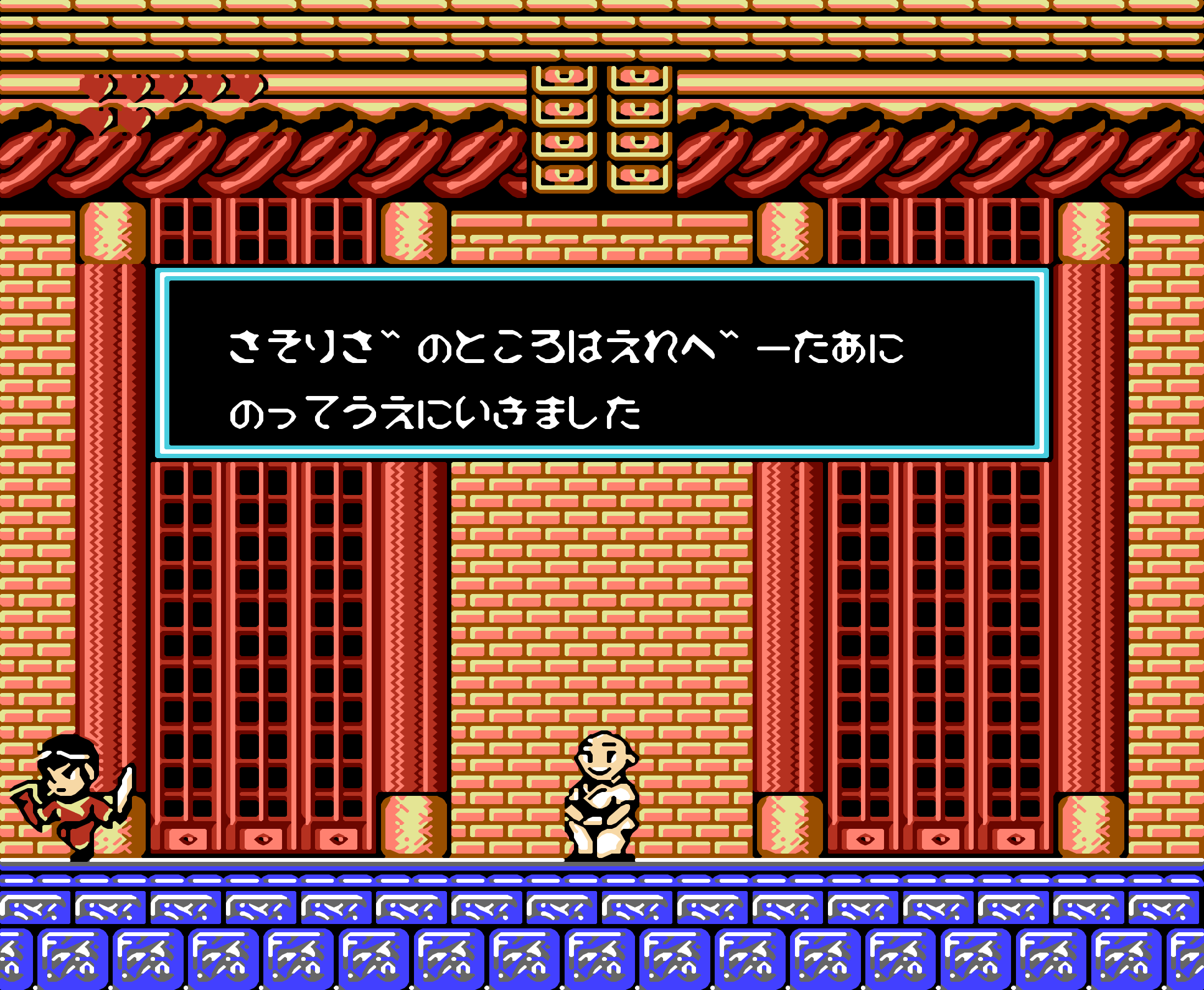 FC 游戏由于容量限制,在涉及字库时日版往往只用假名。《魂斗罗》和《松鼠大作战》全用片假名,因为故事背景来自欧美。《西游记》由于是来自中国的故事,或许开发商考虑到这一点,于是文字全部用平假名来写。虽然大部分人都认为平假名比片假名容易看懂,但其实不一定。